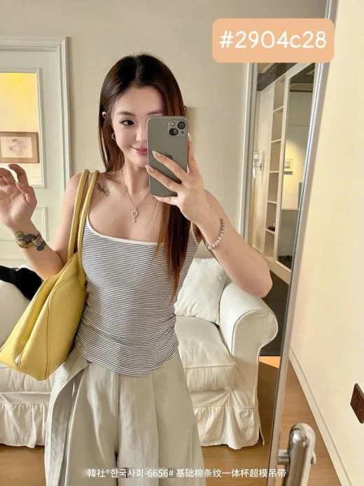 #2904c28 #103k Chốt 2904 ======== ÁO 2 DÂY KẺ KÈM BRA CHO NỮ Phải nói đây là chiếc áo 2 dây e thấy phối đồ đẹp nhất từ trước đến giờ ạ 9 MÀU đánh số freesize 40-67kg 🚛chốt 29/4