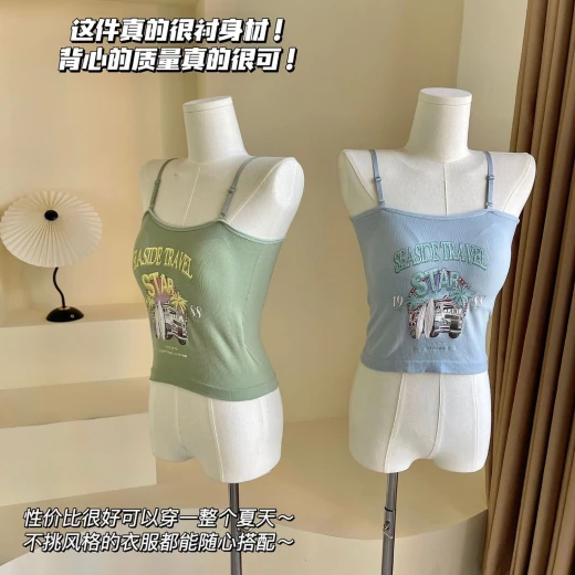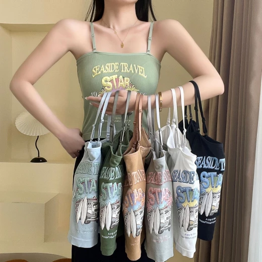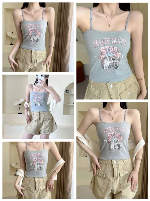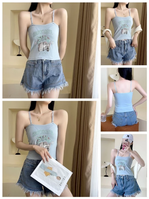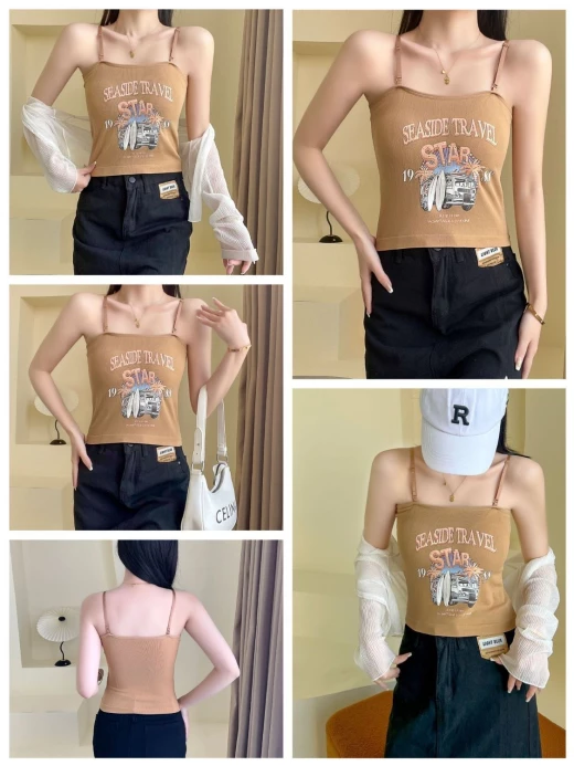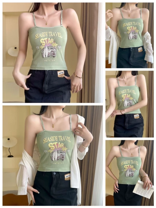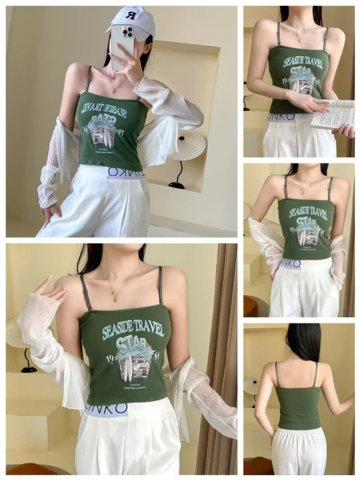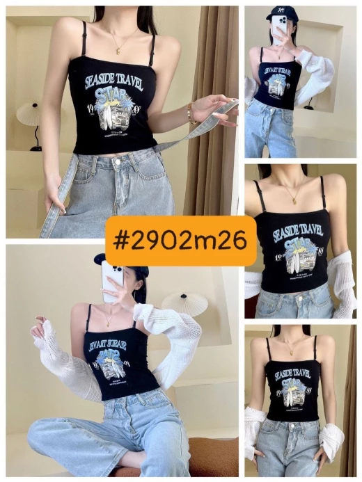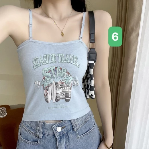#2902m26 ÁO 2 DÂY THUN GÂN IN HÌNH bao mát bao xinh cho chị em nha, mix thêm somi bên ngoài hoặc mix trờn đều okela ✔7 màu đánh số - free sz <62kg ? giá 88k/2c ? chốt 1/3