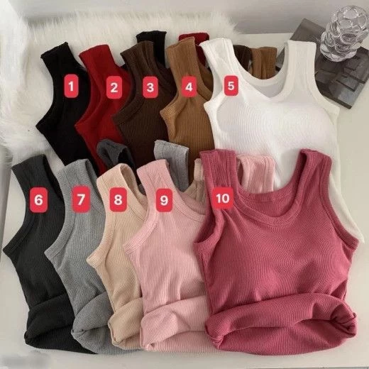 #0806m10 - ÁO BA LỖ KÈM ĐỆM Ba lỗ mặc cả mùa hè đc luôn , hàng về siu đẹp kèm cả mút ngực mặc cái là xong Chất thun gân dày dặn, k quá hở nách ?#159kk/ set 2c chọn màu ✅10 mẫu như ảnh ✅free sz dưới 53kg Màu sắc thực tế có thể đậm, nhạt, sáng hoặc tối hơn ảnh web do ánh sáng cũng như góc chụp khi chụp ảnh Áo form ôm người ce cân nhắc chốt đơn nhé. Giá: 55k/1c chốt 08.06
