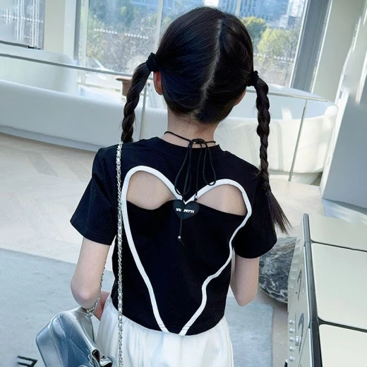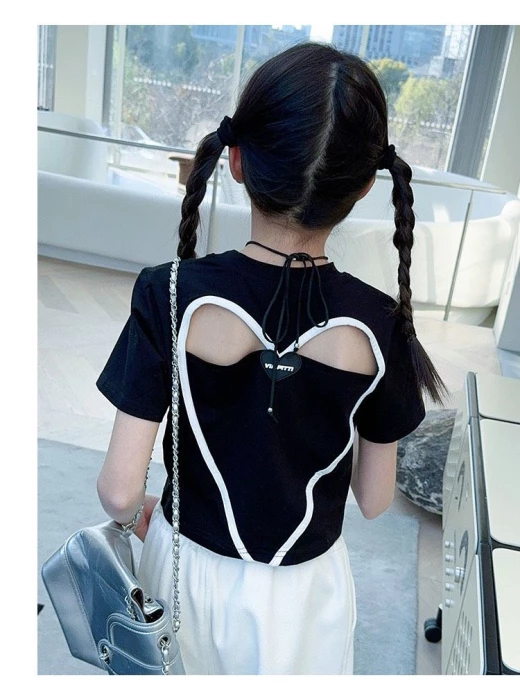 #2103m14 ÁO CRT HỞ LƯNG HÌNH TIM SZ ĐẠI ❤️❤️❤️ Áo cộc hở lưng in chữ cho bé gái mùa hè mát mẻ ? Phong cách sang chảnh giúp bé thêm sành điệu bé có thể mặc đi du lịch đi dã ngoại ,dạo phố ...sẽ luôn là tiêu điểm của mọi ánh nhìn ? ? màu : Đen - Trắng ? size: 120-170 ??giá 113k ⏰Chốt 2103