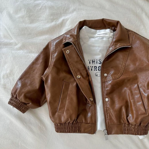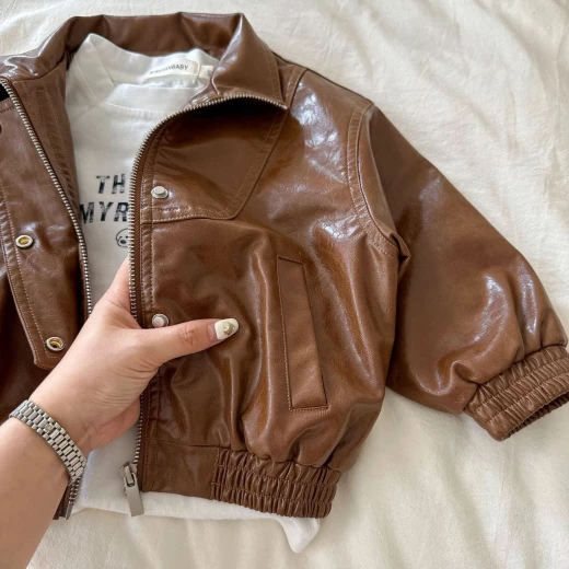 #0501a08 ‼ ‼ Áo da hàng QCCC chất da mềm mịn. Tone nâu bé gái bé trai lên đồ đều đẹp ? ✅ Sz: 90-140 giá: 198k Chốt 05.01