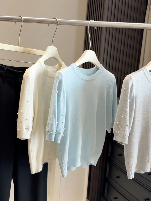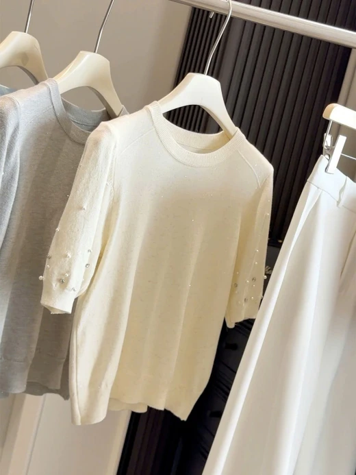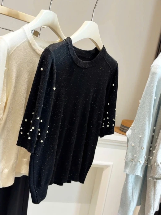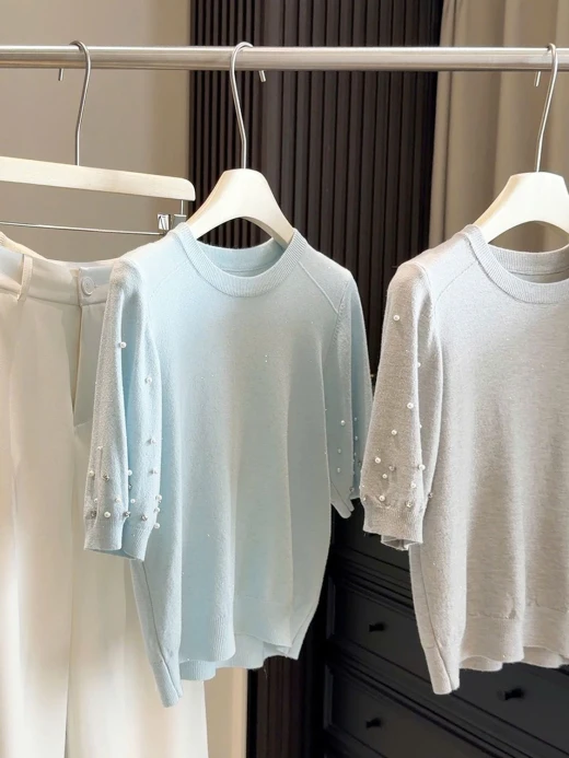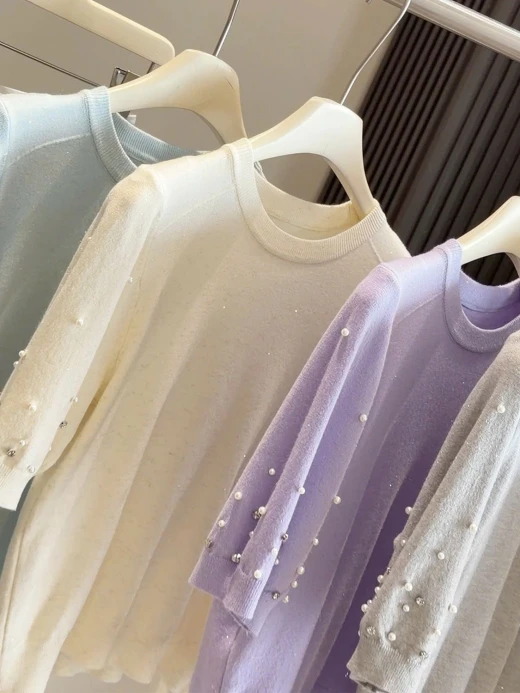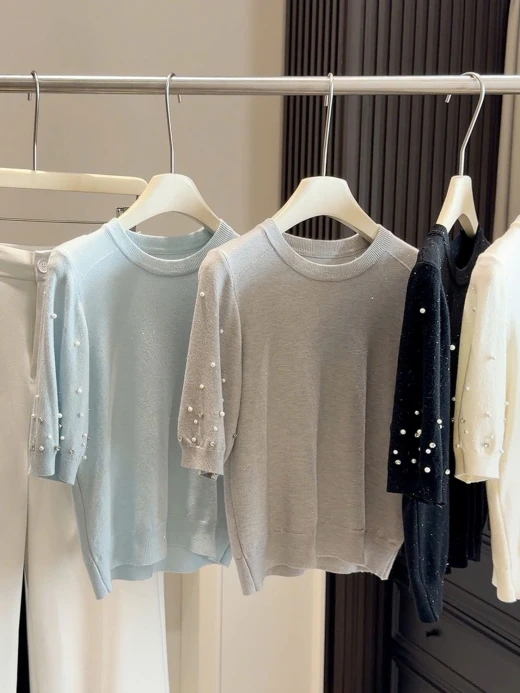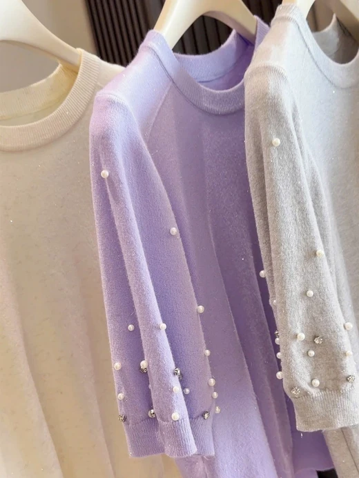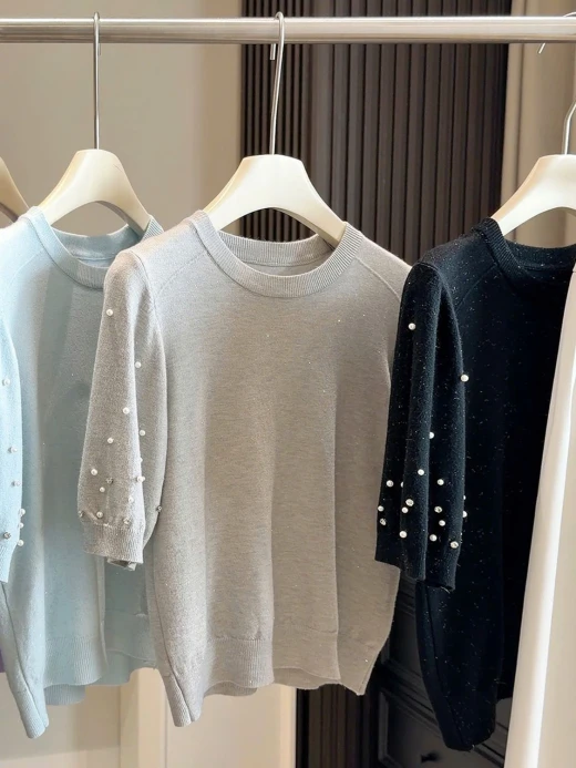 #2502c07 ÁO DỆT KIM ĐÍNH NGỌC ANNA Form đỉnh chóp quá ko zậyyy 5 màu: tím, xanh, be, xám, đen ✅freesz dưới 60kg 🌸 giá 172k 🐬 chốt 25/2