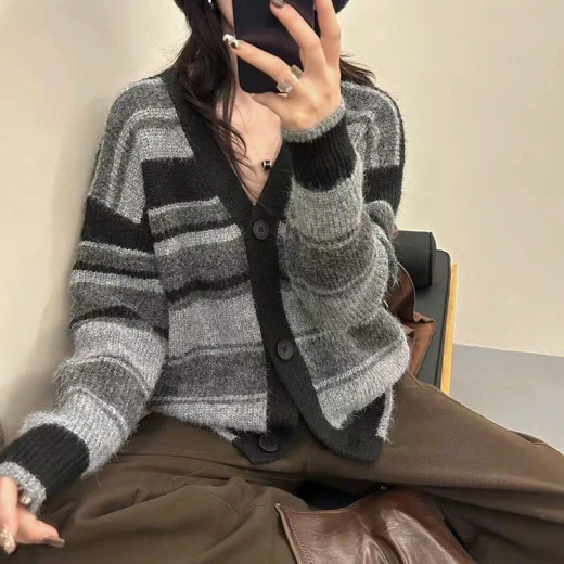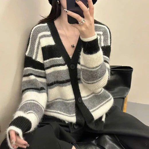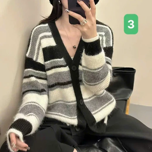 #0112b50 ÁO KHOÁC LEN CARDIGAN KẺ Áo khoác len cardigan kẻ phối màu Chất len cao cấp, mềm mịn, dày dặn Thiết kế oversize thoải mái, dễ mix mọi outfit 4 màu đánh số ✅Size: S-XL Bảng sz tham khảo Sz S: 40-50kg Sz M: 50-55kg Sz L: 55-60kg Sz XL: 60-65kg 🌸 giá 210k 🐬 chốt 1/12