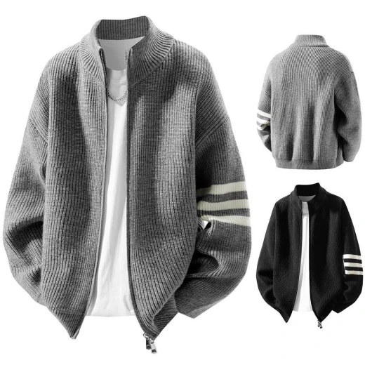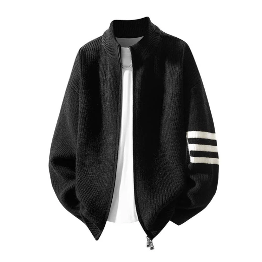 ÁO KHOÁC LEN NAM KÉO KHÓA KẺ TAY 3 SỌC