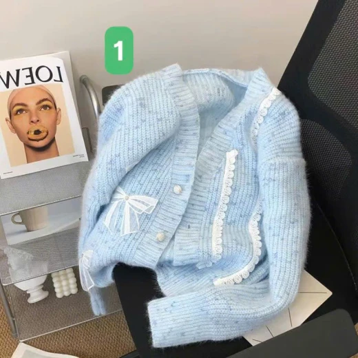 #1510b61 ÁO KHOÁC LEN NƠ PHỐI REN NỮ 👉 Các chị hỏi khoác len nhiều quá nên em lên luôn mẫu 3 màu đánh số sz S-4XL S: 40-47kg M: 48-55kg L: 55-60kg XL: 60-65kg 2XL: 65-70kg 3XL: 70-75kg 4XL: 75-80kg 🌸 giá 169k 🐬 chốt 1510