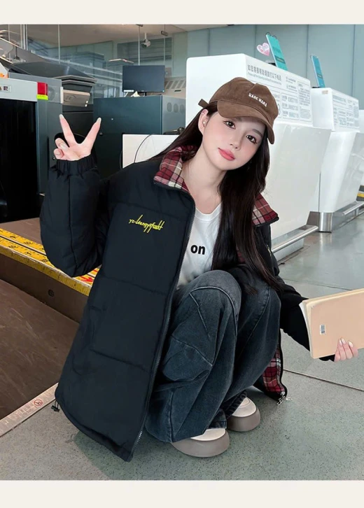 #1110b63 ÁO KHOÁC PHAO CỔ BẺ CARO NỮ Chất dày dặn, nhẹ, ấm, mặc vừa năng động vừa thoải mái lắm ạ. Chốt khẩn trương mua liền tay các chị ơi, bỏ lỡ là tiếc lắm. 3 màu đánh số sz M-3XL 🌸 giá 212k 🐬 chốt 1110