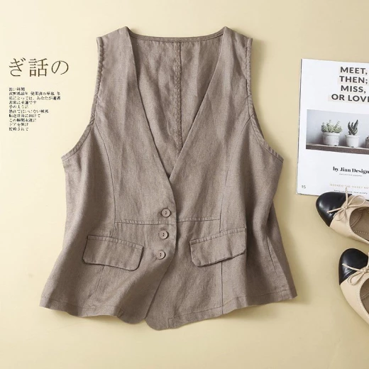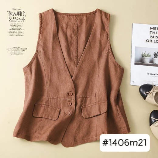 Áo lanh đũi cổ V xuất nhật