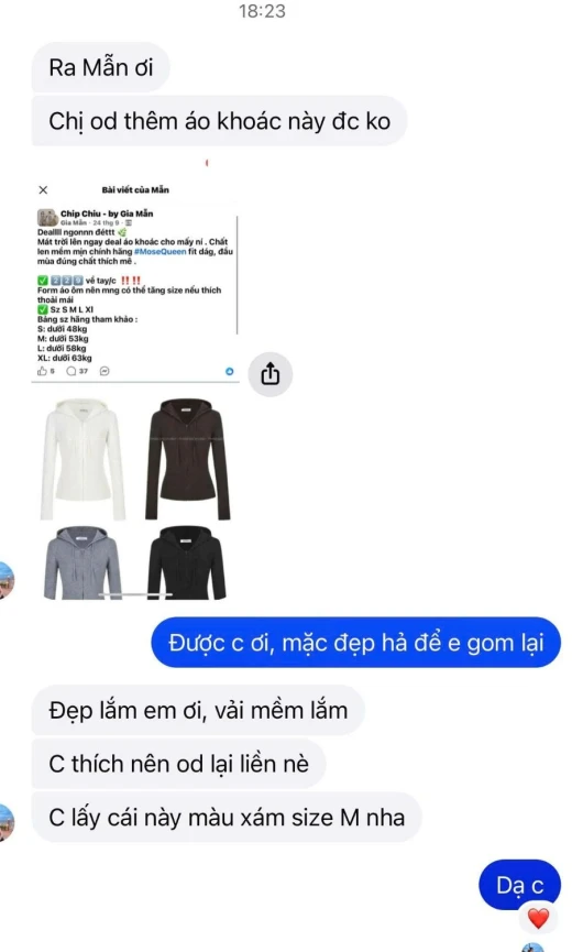 #2412b64 Khách muốn mua thêm e gom lại, bữa trả hàng là e cũng muốn đặt cho e roài mà quên. Chất đẹp lắm ạ Deallll ngonnn đéttt 🌿 Mát trời lên ngay deal áo khoác cho mấy ní . Chất len mềm mịn chính hãng #MoseQueen fit dág, đầu mùa đúng chất thích mê . ✅ xxxxvề tay/c ‼️‼️ Form áo ôm nên mng có thể tăng size nếu thích thoải mái ✅ Sz S M L Xl Bảng sz hãng tham khảo : S: dưới 48kg (hết đen) M: dưới 53kg L: dưới 58kg (hết đen) XL: dưới 63kg Giá: 222k Chốt 2412
