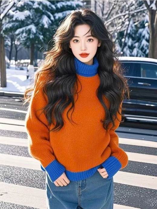 #0412b50 ÁO LEN CỔ LỌ PHỐI MÀU Mặc đi làm hay đi chơi đều hợp gu 2 màu cam, đỏ ✅sz S-XL S 40-47kg M 47-55kg L 55-62kg XL 62-70kg 🌸 giá 178k 🐬 chốt 4/12