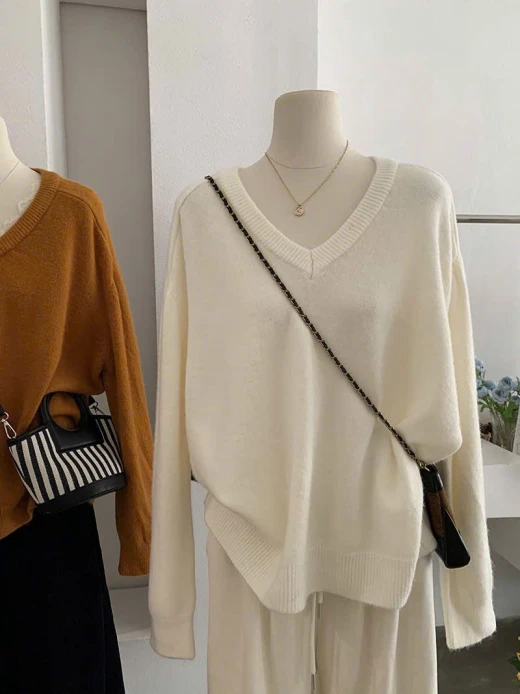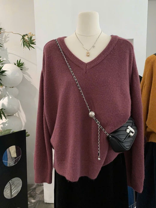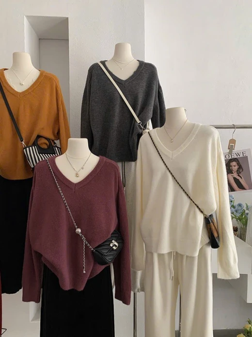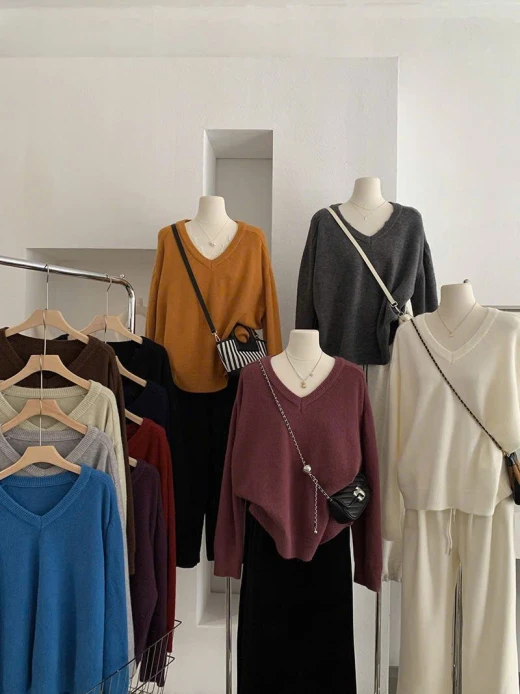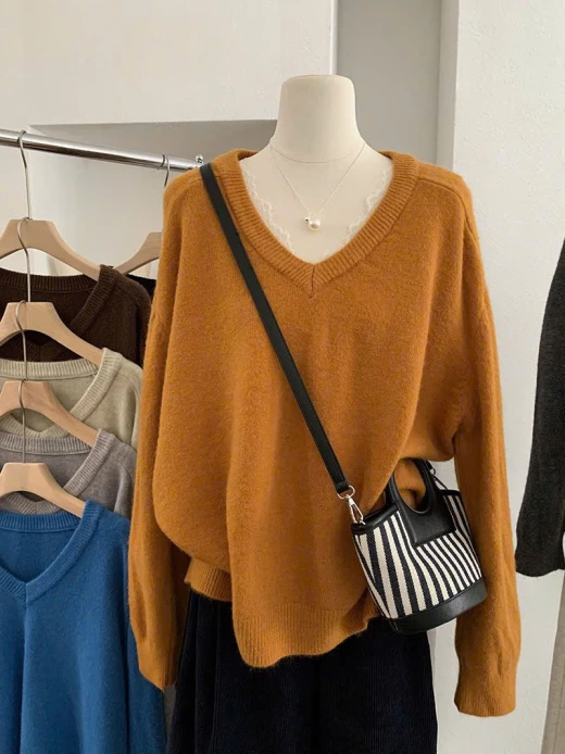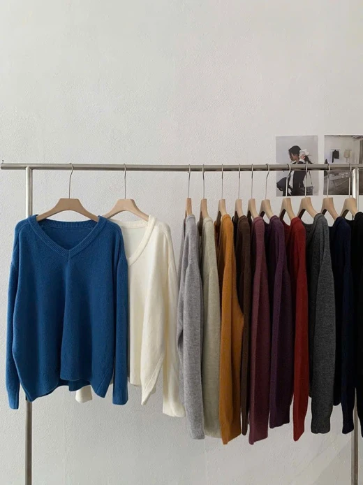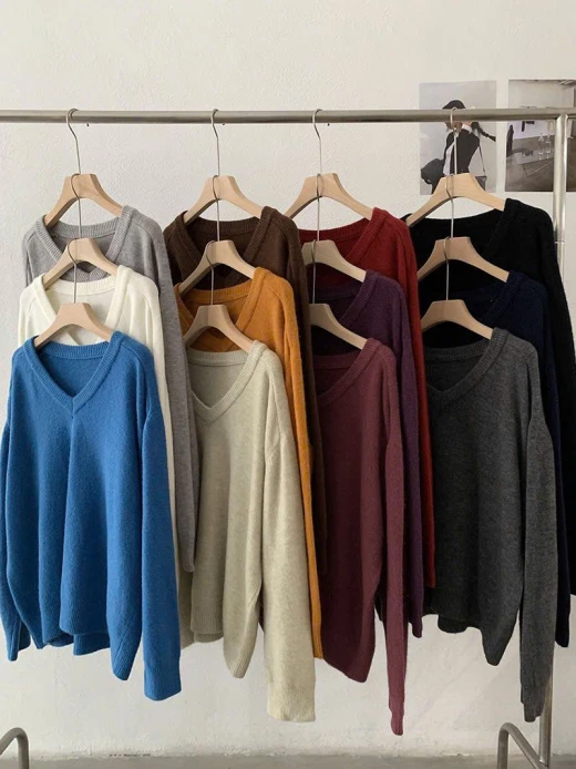 #0911b51 ÁO LEN CỔ V DÁNG RỘNG CHO NỮ ❣️Có bị yêu không các bác, quá là nuột khi diện em này thôi, che khuyết điểm tốt lắm , thật tiếc khi trong tủ đồ không có e này ah Màu siêu sang nhưng phối đồ lên cực xinh, tiểu thư luôn ạ 12 màu đánh số freesize 🌸 giá 200k 🐬 chốt 9/11