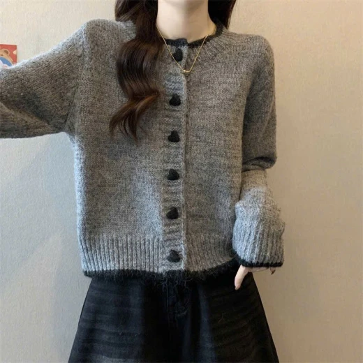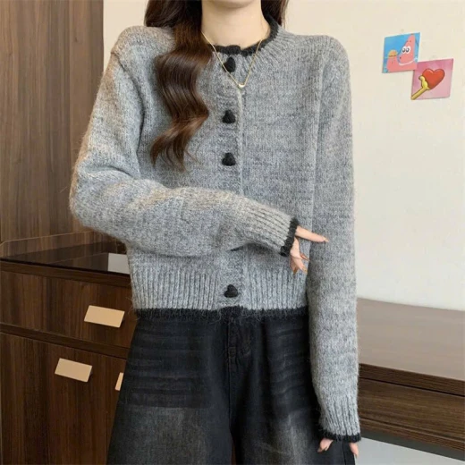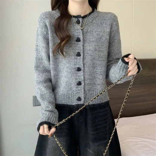 0512b56-ÁO KHOÁC LEN GÂN TRƠN MÀU CỔ TRÒN