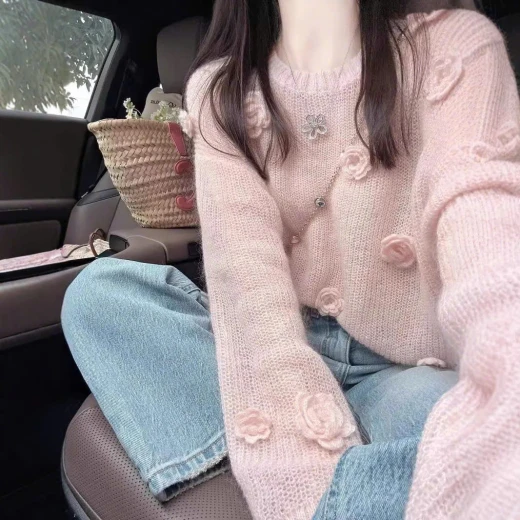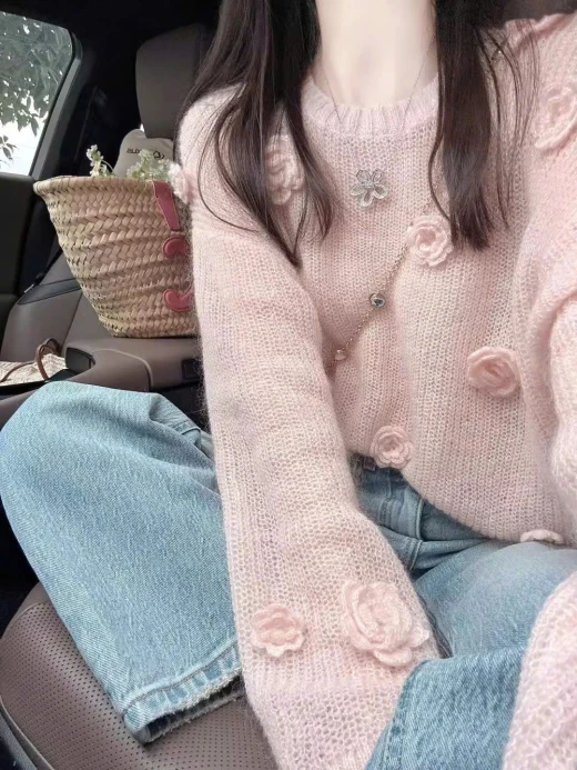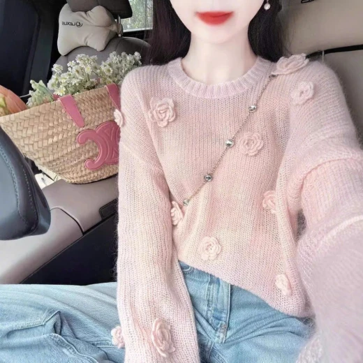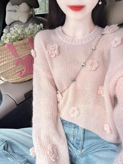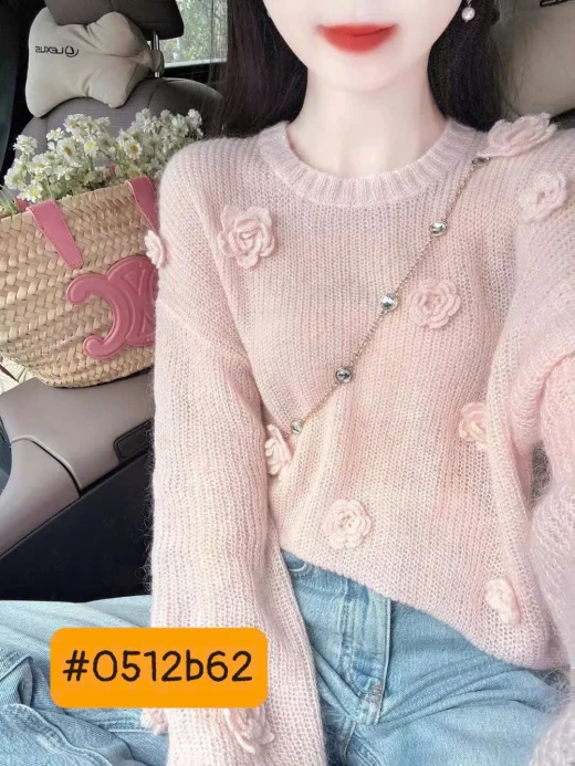 #0512b62 ÁO LEN ĐAN HỒNG GẮN HOA 3D ❤️Mã này hot thật sự nhé ạ! Lâu lâu mới có mã áo phối đẹp ntn. Hàng loại 1 nhé! ❤️Thiết kế áo hài hoà - mặc lên đáng iu xỉu, E này mix gì cũng xinh nha. Size dưới 60kg 🌸 giá 165k 🐬 chốt 0512