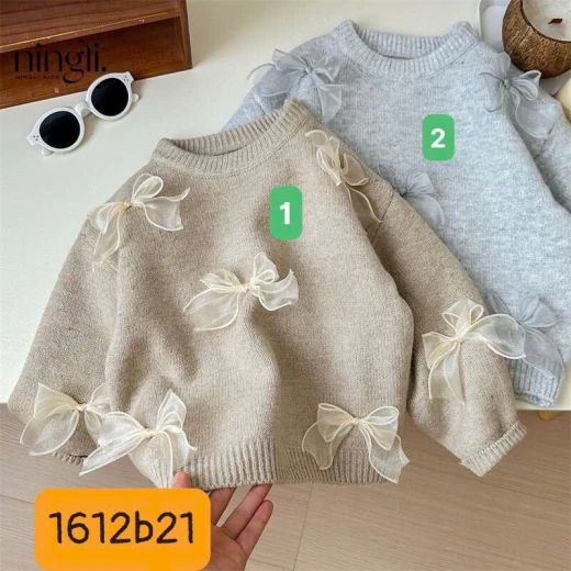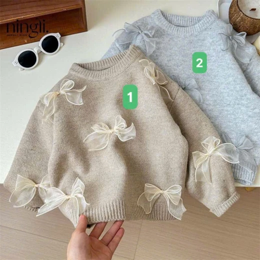 #1612b21 ÁO LEN ĐÍNH NƠ CHO BÉ Áo lên ấm, mềm mịn, đính nơ xinh xẻo, mặc đi học đi chơi đều xinh! 2 màu đánh số ✅sz 90-140 90: 11-13kg 100: 13-15kg 110: 15-17kg 120: 17-20kg 130: 20-25kg 140: 25-30kg 🌸 giá 137k 🐬 chốt 16/12