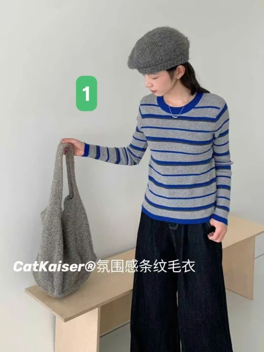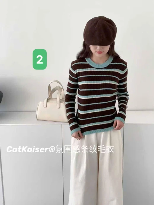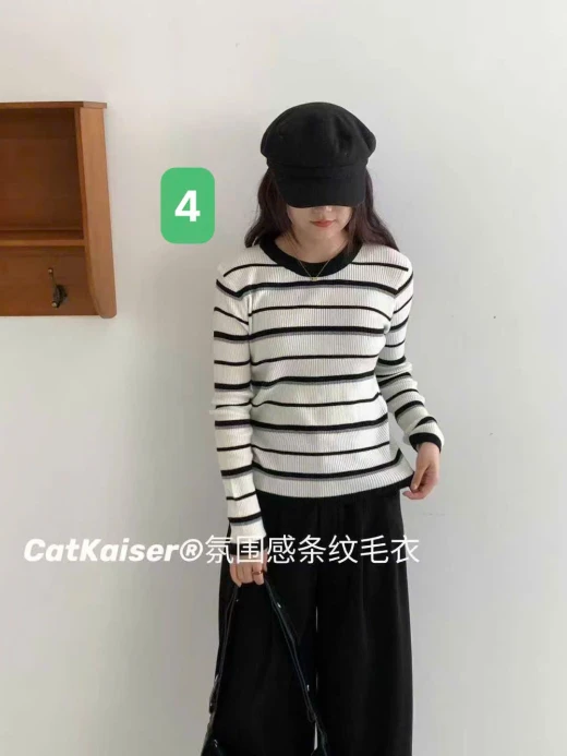 #1310b39 ÁO LEN KẺ CATKAISER NỮ Màu sắc trendy, dễ phối đồ 5 màu đánh số ✅freesz dưới 65kg 🌸 giá 129k 🐬 chốt 1310