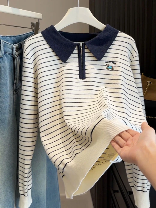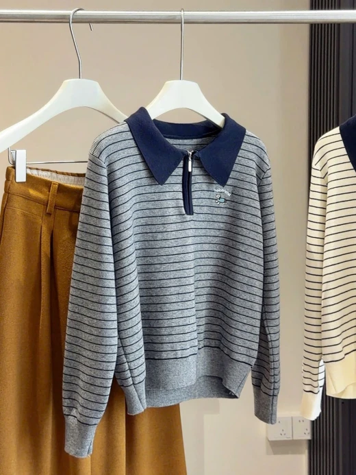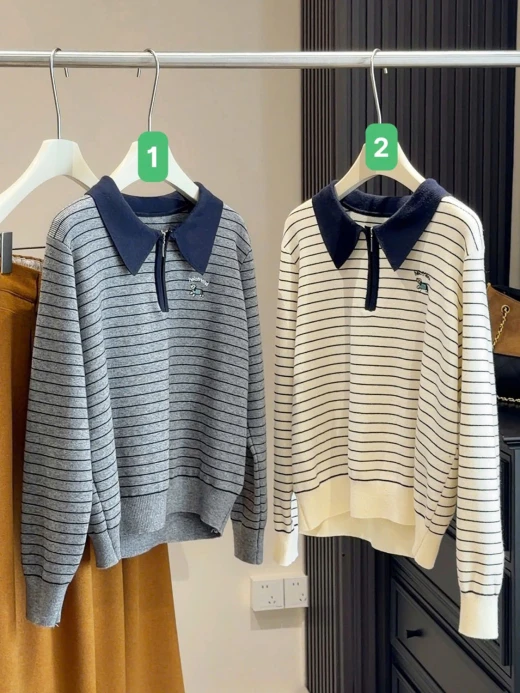 #1712b51 ÁO LEN KẺ CỔ POLO Đẹp nhức nách. Đến hẹn lại gom Kiểu dáng đơn giản mà lịch sự, mặc đi làm hay đi chơi đều đẹp duyệt luôn nhé Màu : be, xám ✅frsz 🌸 giá 213k 🐬 chốt 17/12