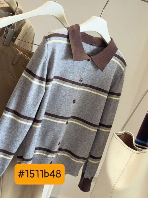 #1511b48 ÁO LEN KẺ CỔ POLO ANNA Mã này mặc thu đông thì siêu đẹp luôn các c 2 màu: cổ xanh, cổ nâu freesize 40-60kg 🌸 giá 198k 🐬 chốt 1511