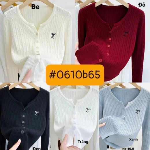 #0610b65 ❤️❤️ ÁO LEN NƠ Xinh nè ..Mix max với gì cũng xinhhh ạ Only #149kaaaaa ✔️ Chất len mềm mịn lắm nhé các nàng ❤️5 màu : trắng - be - xanh - đen - đỏ ❤️free sz 40-65kg Giá: 106k Chốt 0610