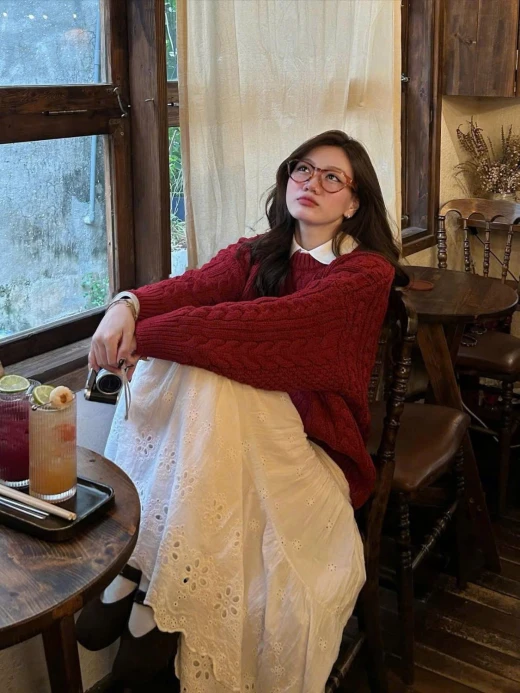 #3012b70 ÁO LEN THỪNG DẦY SỤ /-heart Len thừng loại 1 , khác hẳn loại rẻ các bà nhé Nhìn là biết ngay rùiii Len đan dầy, phom dài chuẩn mẫu mấy chuỵ uiiii ✔️2 màu : đỏ - kem Giá 150k Chốt 3012