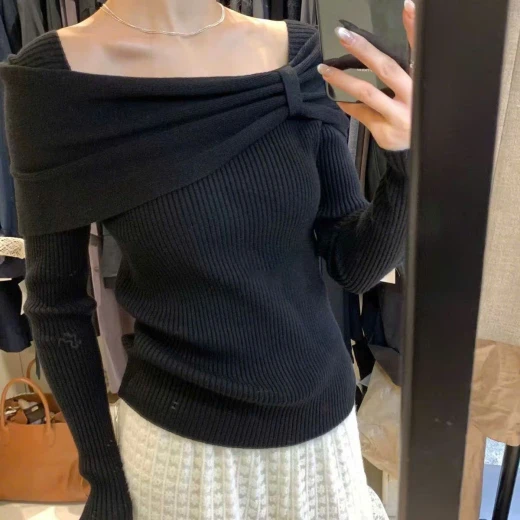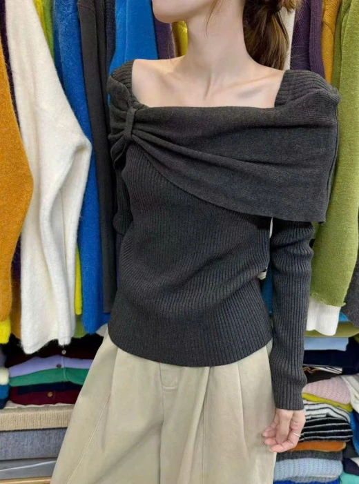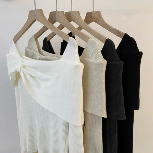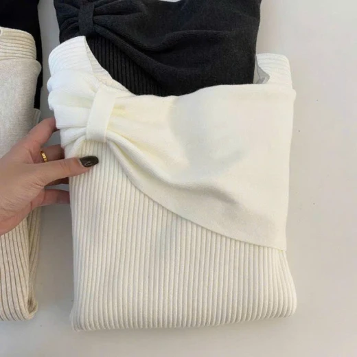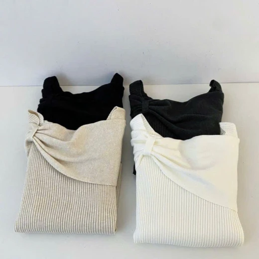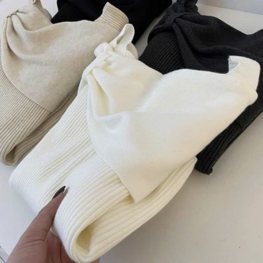 #3011b63 ÁO LEN TRỄ VAI THẮT NƠ HÀN QUỐC ✔4 màu đánh số ✔Size : free sz < 60kg 🌸 giá 184k 🐬 chốt 30/11