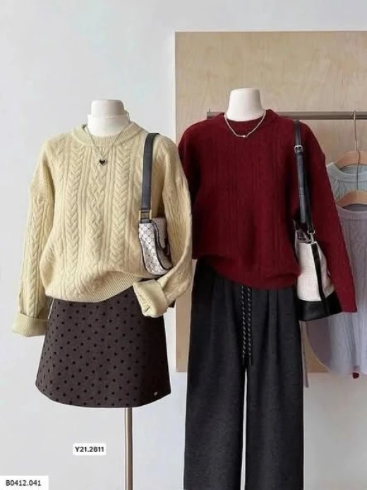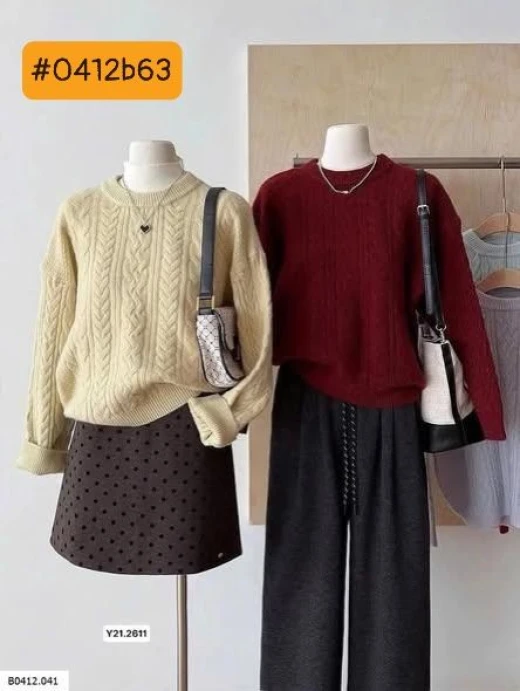 #0412b64 ❤︎ Áo len vặn thừng Cache #310ka 💐 Sắp đến đợt lạnh nhất trong năm rùi các chị sắm lấy vài cái áo len mặc tránh rét đi ạ 💐 Cache chất len dày dặn lắm ạ, mặc lên siêu xinh 💐 Size: S ---> 2XL S < 48kg M < 53kg L < 58kg XL < 63kg, 2XL < 70kg Màu sắc của sản phẩm thực tế có thể đậm or nhạt sáng or tối hơn ảnh do hiệu ứng ánh sáng & góc chụp sản phẩm Giá: 250k Chốt 0412