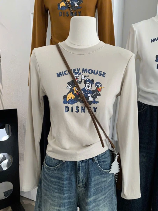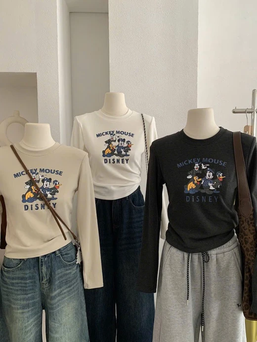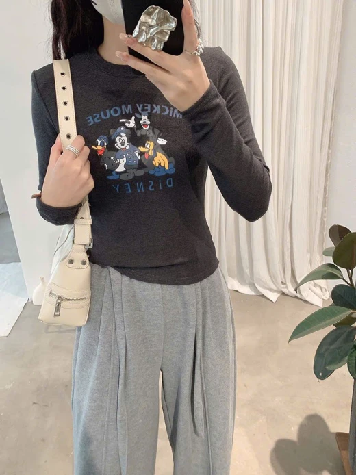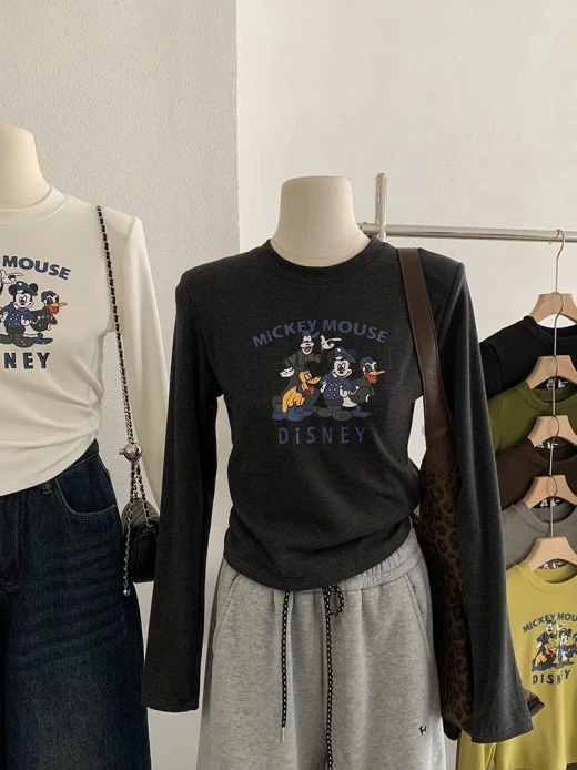 2411b43-ÁO NỈ CROPTOP IN MICKEY
