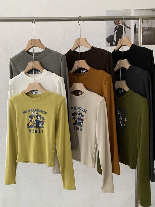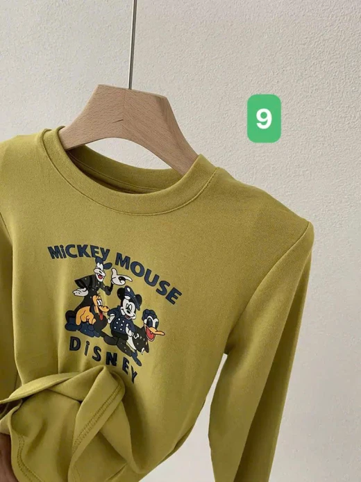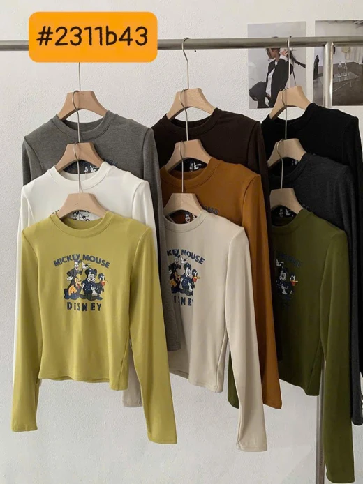 #2411b43 ÁO NỈ CROPTOP IN MICKEY ✔9 màu đánh số ✔Size : free < 62kg 🌸 giá 135k 🐬 chốt 24/11