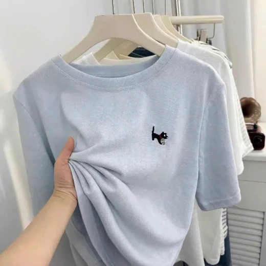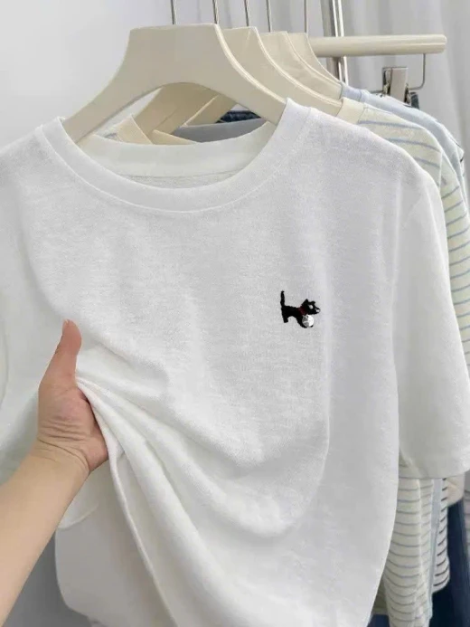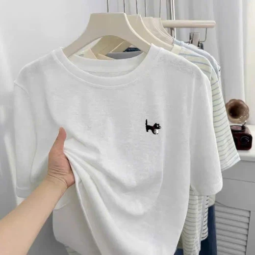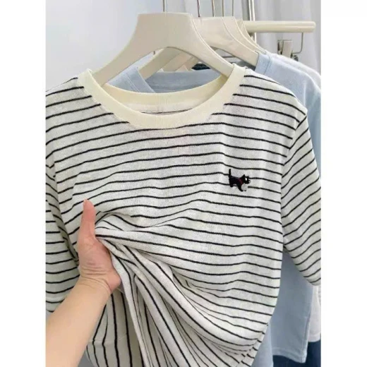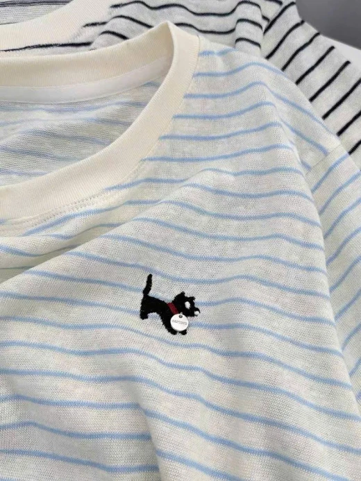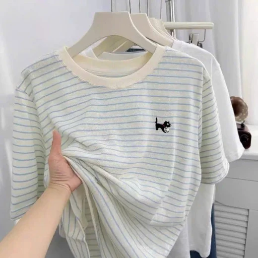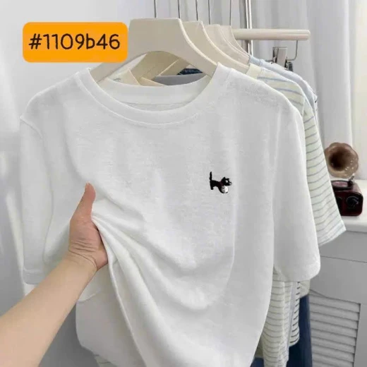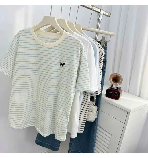 #1109b46 ✅️ ÁO PHÔNG NỮ SỢI TRE THÊU MÈO #165ka/c , từ 2c #155k/c Áo phông nữ ngắn tay thêu hình mèo nhỏ xinh trước ngực, chất vải sợi tre cao cấp mỏng nhẹ, mềm mịn, co giãn tốt và thoáng khí cực kỳ dễ chịu. ✅️4 Màu: sọc đen, sọc xanh, trắng, xanh dương ✅️Size: M, L, XL, 2XL, 3XL, 4XL Bảng size tham khảo: M: dưới 60kg L: dưới 72kg XL: dưới 82kg 2XL: dưới 92kg 3XL: dưới 110kg 4XL: dưới 120kg ✅️ Màu sắc thực tế của sản phẩm có thể đậm hoặc nhạt hơn ảnh do hiệu ứng ánh sáng và góc chụp. giá: 122k chốt 1009