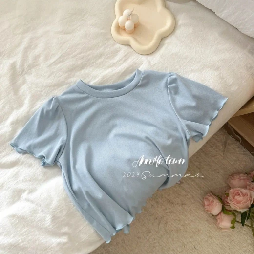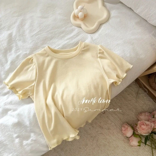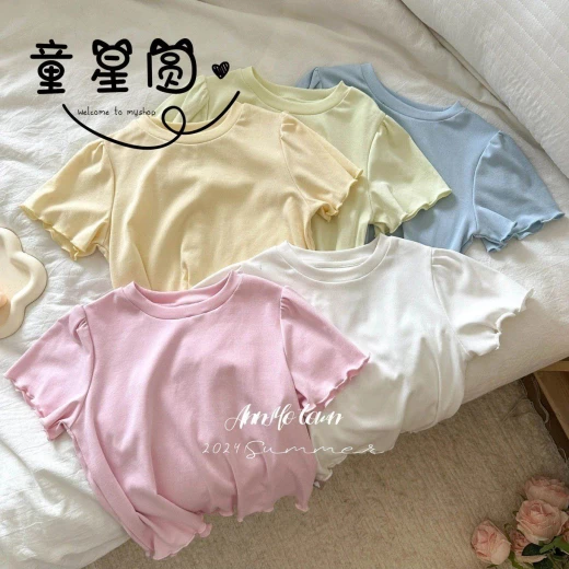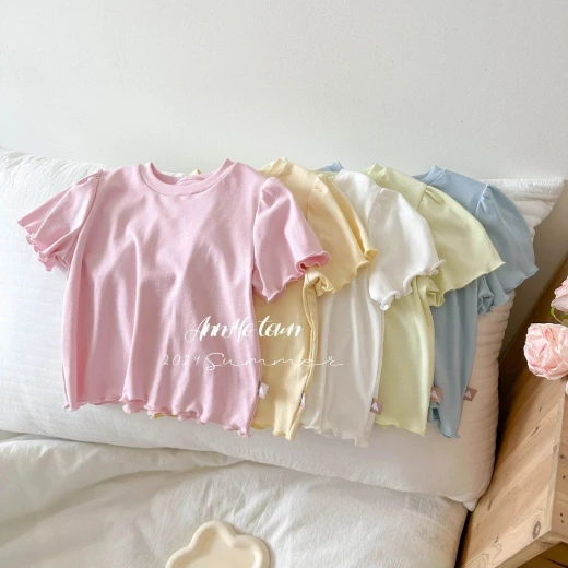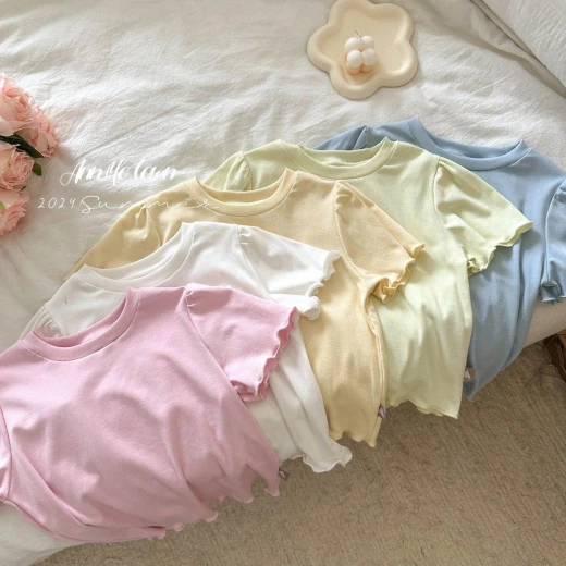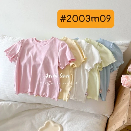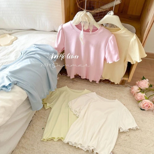 #2003m09 ‼ ‼ Áo phông trơn tone màu dễ thương Chất vải thun xuất hàn mềm mát, thiết kế tay bèo xinh xắn ✅ 5 màu như hình đánh số ? Sz: 90-140 Giá: 62k Chốt 20.03