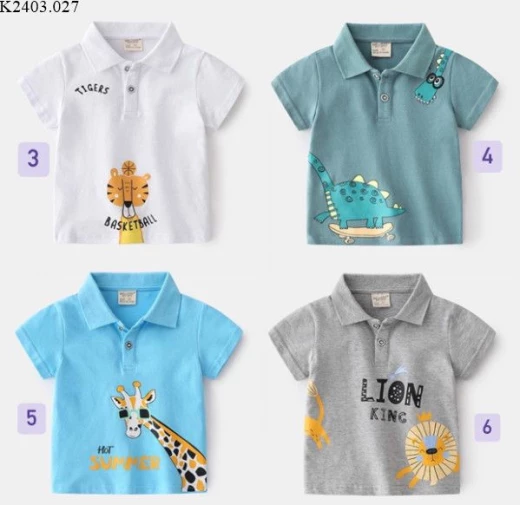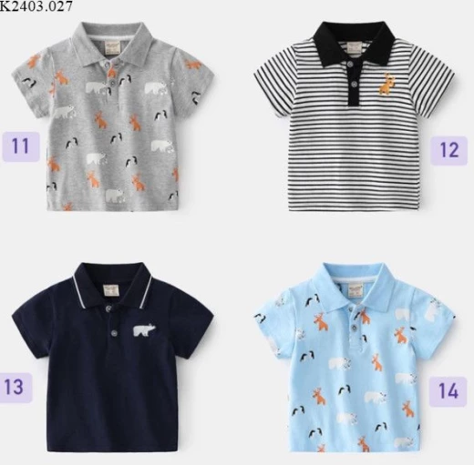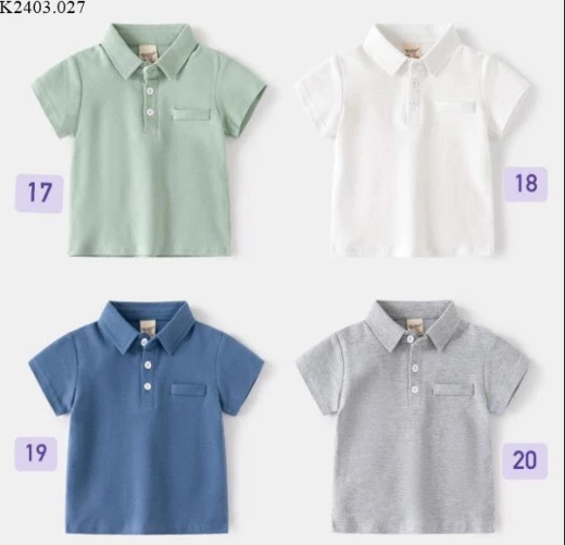 #2403m22 ‼️‼️ DEAL SALE POLO KID. MÀU BASIC ĐẸP LẮM , CHẤT THÌ KHÔNG KÉM GÌ ZARA ĐÂU CÁC MẸ ƠI . ❌❌ÁO POLO BÉ CỘC TAY HÃNG WAPYPY❌❌ BST xuân hè mới sale rùi đây ạ ? Bao đẹp, bao xịn luôn ạ Chất siêu đẹp hàng nội địa hãng wapypy cái hãng mà e bán áo gile và áo bóng cháy đấy ạ ❌❌khách nhận là biết hãng này chất lượng như nào rồi đó k phải bàn về chất của hãng này đâu vô địch lun ✅Nhiều mẫu như e ghi số ✅ Size 90-130 Sz 90 10-13kg Sz 100 13-15kg Sz 110 15-17kg Sz 120 18-20kg Sz 130 20-23kg Tuỳ theo chiều cao tuổi bé lấy sz giúp e nha Giá: 82k chốt 24.03