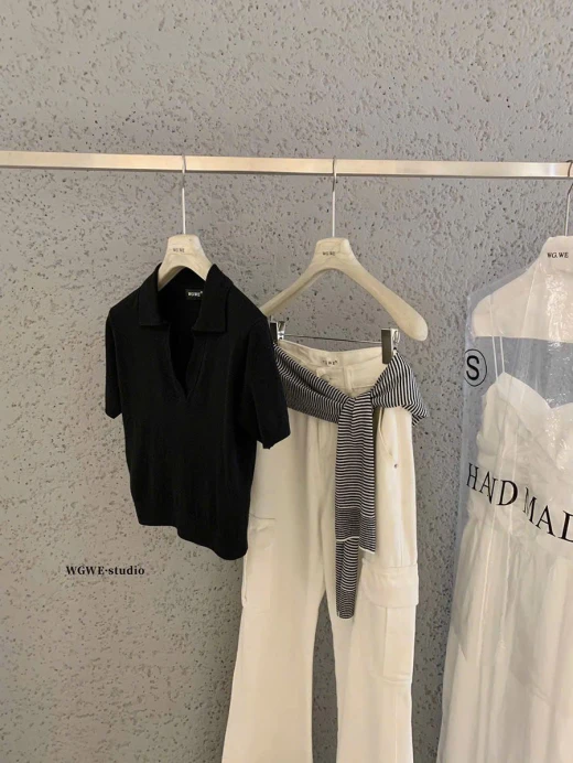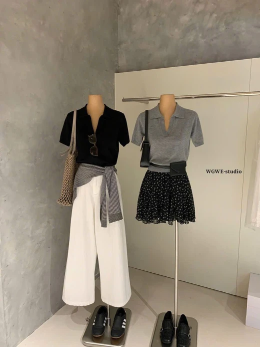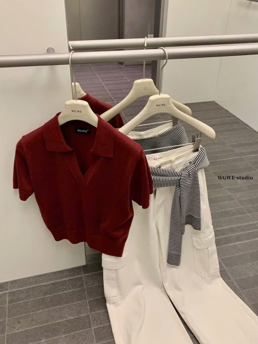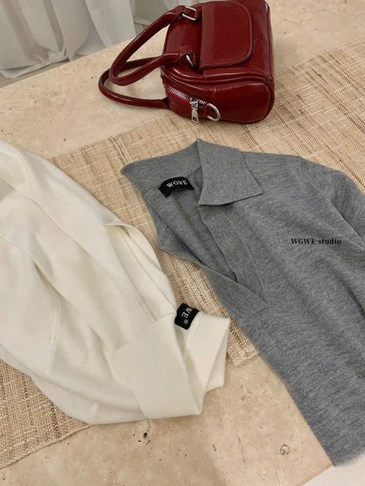 #0503c46 ÁO POLO DỆT KIM TRƠN MÀU WGWE 🍑 Màu lên siêu xinh, mặc cực tôn da luôn ạ ✅ Freesize dưới 60kg mặc vừa đẹp 💕 🌸 giá 162k 🐬 chốt 5/3