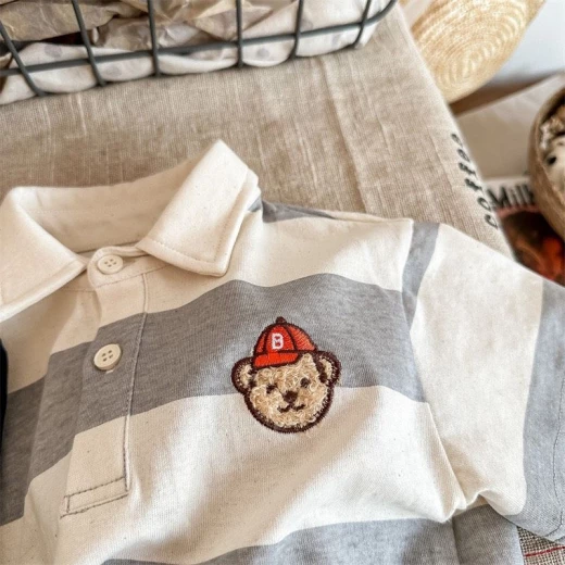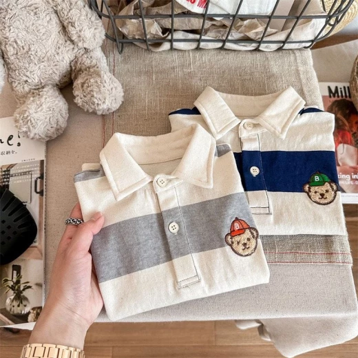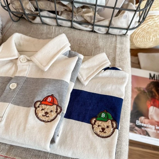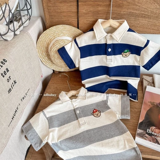 #0301a01 ??ÁO POLO KẺ SỌC THÊU GẤU CHO BÉ HÃNG ADBABAY ❣️Áo polo cho bé gái hay bé trai đều mặc được nha Polo dễ mix đồ lắm nè mà mặc đi học, đi chơi đều được nha ?2 màu: Xanh- Xám ✅Size 80-130 80: 9-11kg 90: 11-13kg 100: 13-15kg 110: 15-17kg 120: 17-20kg 130: 20-25kg ? giá 125k ? chốt 3/1