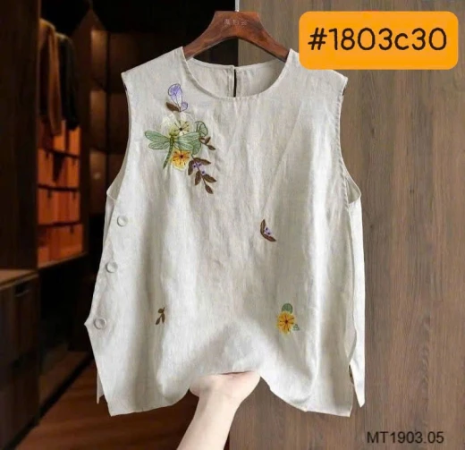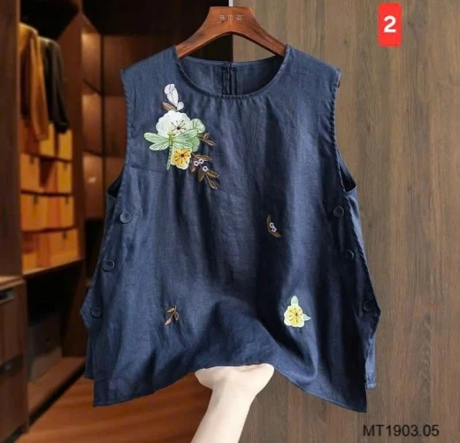 #1803c30 ‼ ÁO SÁT NÁCH THÊU HOA PHỐI CÚC SƯỜN 135k Áo nữ dáng suông rộng rãi, thiết kế sát nách thoáng mát, phong cách nhẹ nhàng dễ mặc. ✅️ 2 màu đánh số ✅️ Size: M-3XL Bảng size tham khảo: M: 42 – 50kg L: 50 – 57kg XL: 57 – 62kg 2XL: 62 – 70kg 3XL: 70 – 80kg Giá: 100k ,”chốt 1803