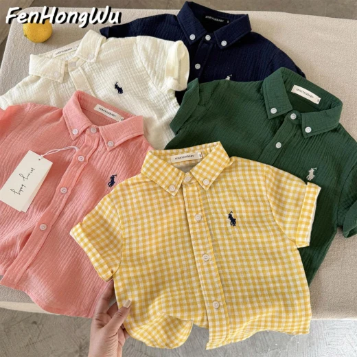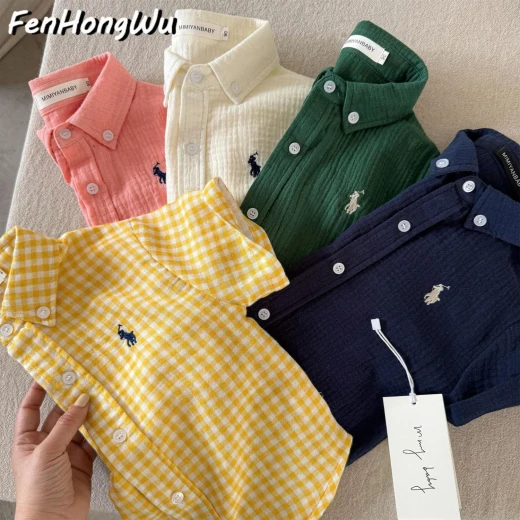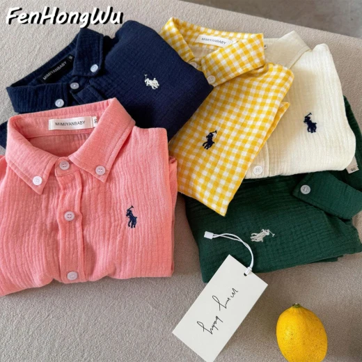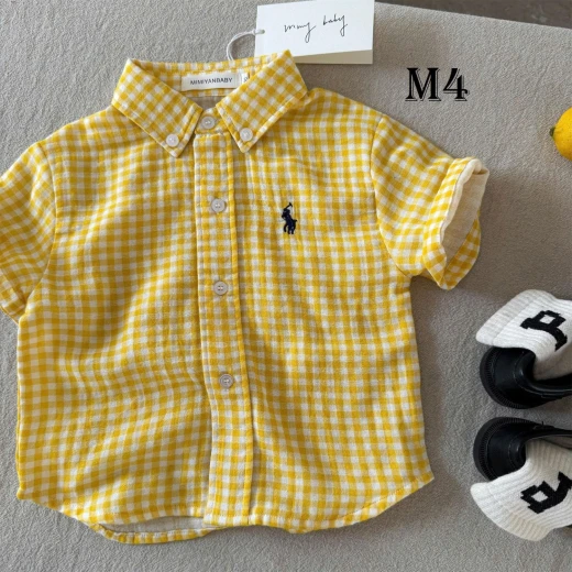 #1903c46 ‼ ‼ ‼ ÁO SƠ MI CHẤT MỀM CHO BÉ FENHONGWU Áo sơ mi bé thiết kế caro nhỏ xinh, form rộng thoải mái với cổ bẻ lịch sự. Họa tiết thêu trước ngực tạo điểm nhấn dễ thương ✅️ 4 màu đánh số( hết hồng) ✅️ Size: 90-140 Bảng size tham khảo: 90: ~11–14kg 100: ~14–16kg 110: ~16–19kg 120: ~19–22kg 130: ~22–27kg 140: ~27–30kg 🌸 giá 107k 🐬 chốt 19/3