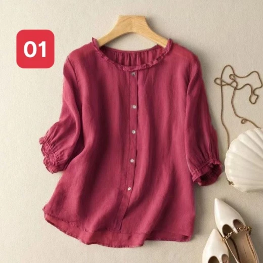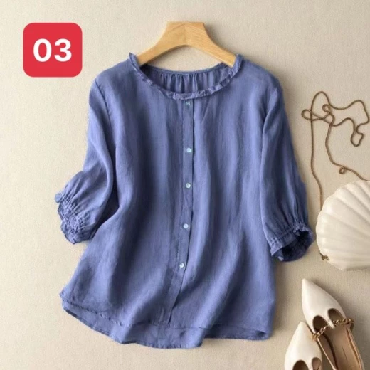 #1506m46 ?ÁO SƠ MI CHO NỮ TAY LỠ Dáng áo suông tay lỡ không kén tuổi lại chê được khuyết điểm ạ Mặc nhẹ tênh , mát và mềm ?? 5 mẫu đánh số sz M-3XL M 40-50kg L 50-60kg XL 60-70kg 2XL 70-80kg 3XL 80-90kg ?Zá : #139kkk/c Màu sắc của sản phẩm thực tế có thể đậm or nhạt sáng or tối hơn ảnh do hiệu ứng ánh sáng & góc chụp sản phẩm . ?Giá: 85k ⏰Chốt 15.06