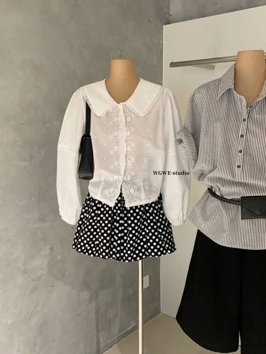 #0203c22 ÁO SƠ MI CỔ SEN W.G.W.E Sơ mi thô boi nhà WGWE vừa lên kệ đã hot r ạ Cổ sen tiểu thư sang chảnh, đẹp từng chi tiết ✅sz S-M S dưới50kg M 50-58kg 🌸 giá 220k 🐬 chốt 0203