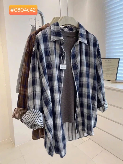 #0804c42 #121k/c chốt 0804 ====== xác nhận là đẹp hơn ảnh nhá 🤣 Full 2 màu cho ce lunnnn Kẻ nâu, kẻ xanh Only #1xx/chiếc Fullsz from rộng siu xinh M 45-55kg L 55-65kg Xl 65-75kg 2XL 75-85kg 🚛Hàng od 2-5w, chốt 0804