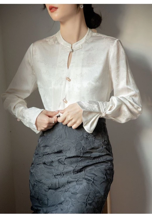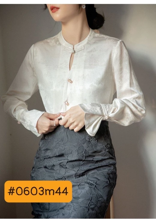 #0603m44 ? ÁO SƠ MI THIẾT KẾ CÀI CÚC KIỂU TRUNG HOA CHO NỮ ? Chất vải xịn đẹp mặc 4 mùa thoải mái, ce công sở diện e này đi làm thì sang chảnh hết nấc , nói chung là siêu ưng 2 kiểu đánh số sz S M L XL Bảng size tham khảo trên ảnh ? giá 218k ? chốt 06.03