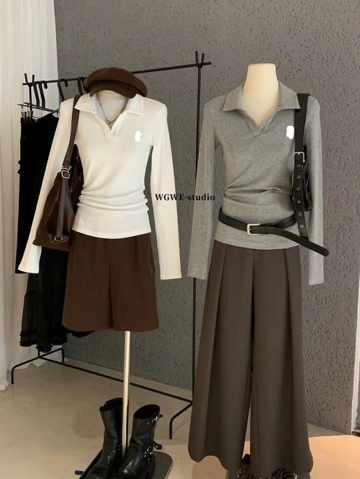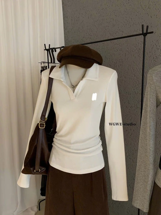 #2511b59 ÁO THUN DÀI TAY CỔ V BẺ WGWE ‼️‼️Áo polo cổ V dài tay cho outfit thu đông sắp tới ạ 6 màu đánh số sz S-M 🌸 giá 190k 🐬 chốt 25/11