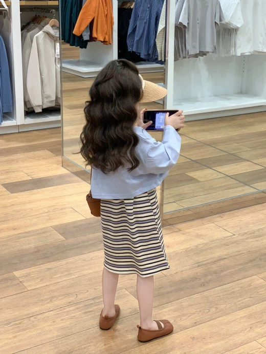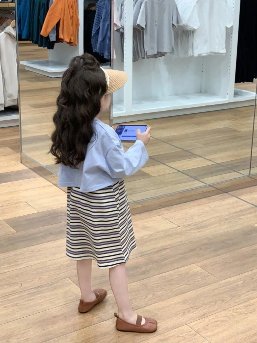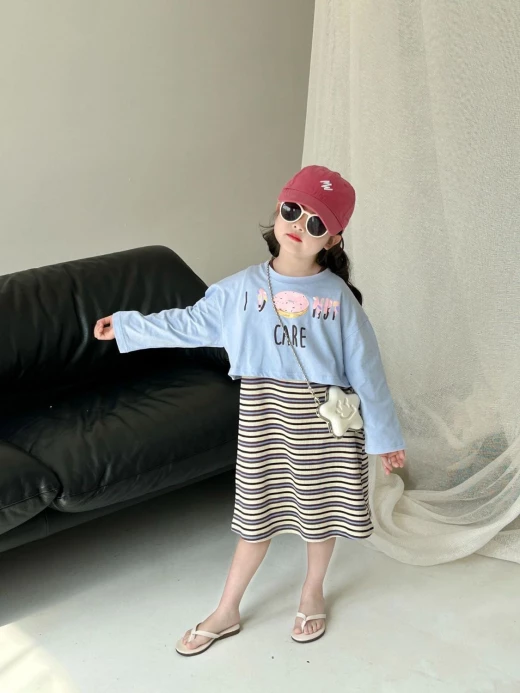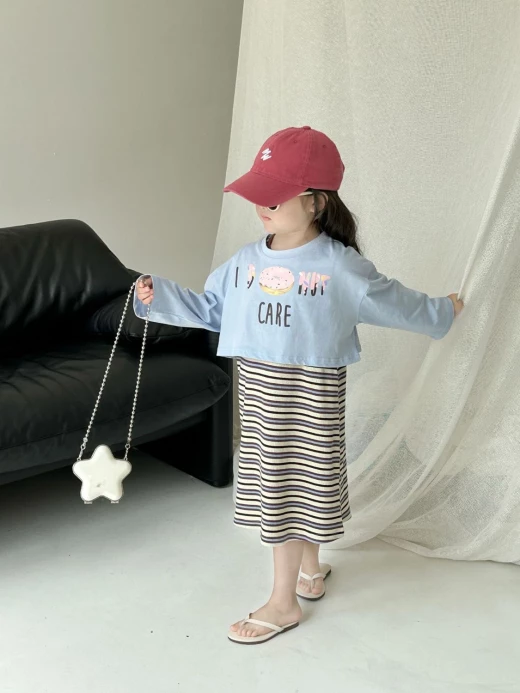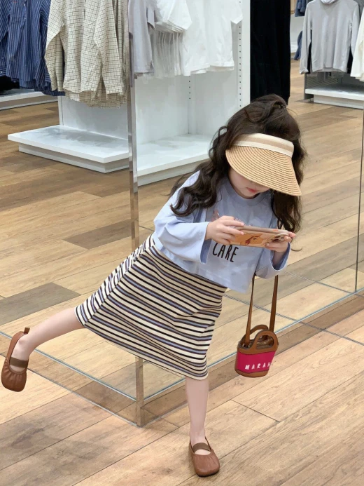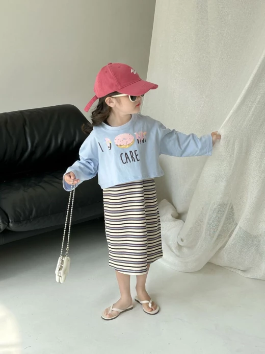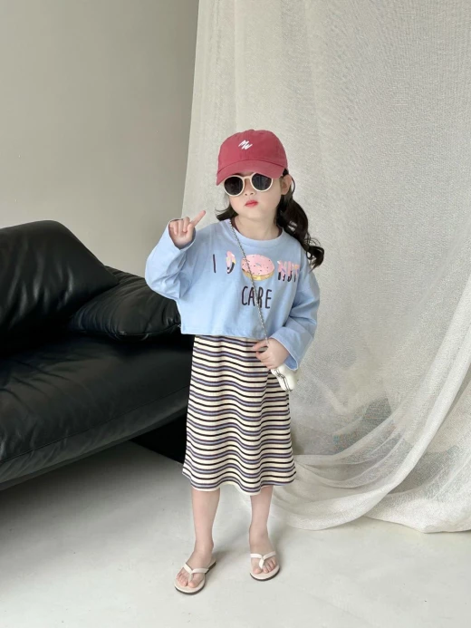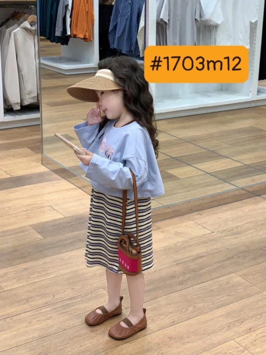 #1703m12 ÁO THUN DÀI TAY MIX VÁY SỌC NGANG BG Thời tiết se se lạnh mặc set này quá oke luôn ạ, siêu năng động, cá tính size 5-15 ( tương đương 90-140) ? giá áo: 122k váy: 133k ? chốt 17/3