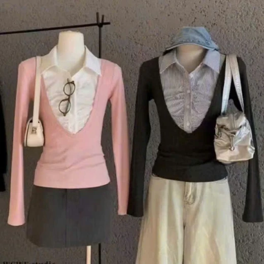 Áo thun phối cổ sơ mi siêu tiện