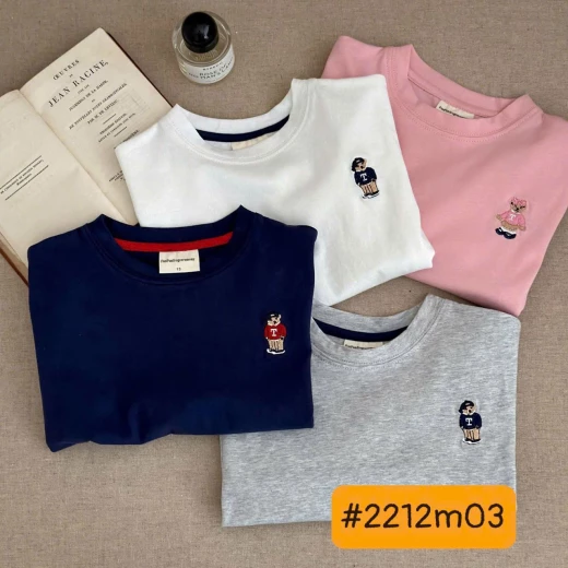 #2212m03 ✅✅ ÁO THUN DÀI TAY THÊU GẤU MMY - 4 màu: than- trắng-hồng-xám - size: 90-140 Giá: 97k/1c Chốt 22.12