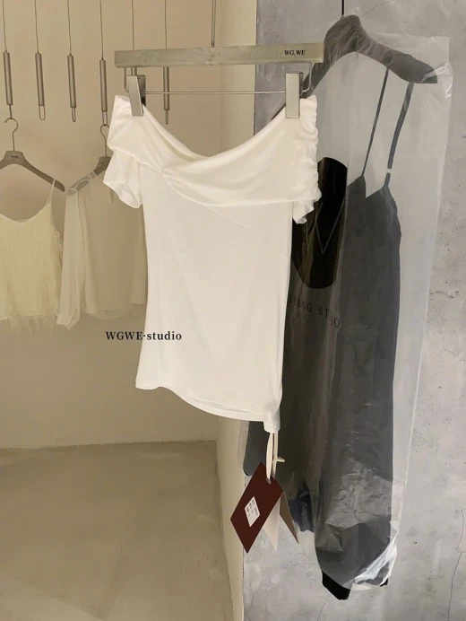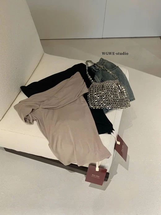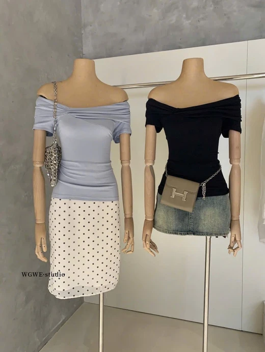 #2312b49 ÁO THUN HỞ VAI TRƠN MÀU WGWE Áo xinh cho ce nè, áo hở vai vừa mát vừa điệu đà. Dễ mix đồ nha c ơi quần hay chân váy cân tất ạ 5 màu đánh số sz S M 🌸 giá 124k 🐬 chốt 2312