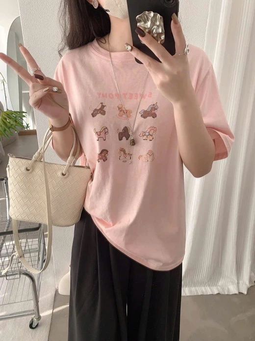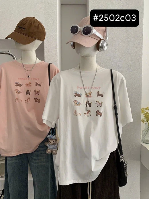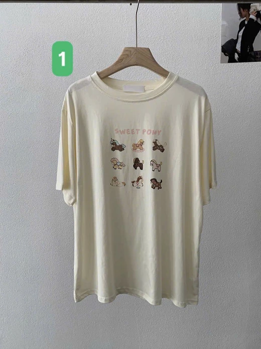 #2502c03 ÁO THUN IN NGỰA ✔5 màu đánh số ✔Size : free sz < 65kg 🌸 giá 137k 🐬 chốt 25/2