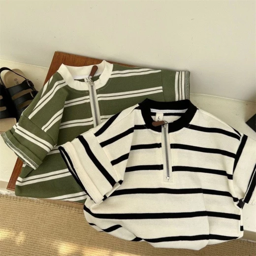 #0301a02 ÁO THUN KẺ SỌC CỔ KHÓA KÉO CHO BÉ ❣️Kẻ basic vẫn cứ là chân ái nha, mấy mẫu kẻ phối màu này xịn sò quá. Đơn giản chỉ áo phông quần jean đã tạo nên 1 set đồ hoàn hảo năng động ???? 2 màu: be-xanh lá ✅ sz 90-140 90: 11-13kg 100: 13-15kg 110: 15-17kg 120: 17-20kg 130: 20-25kg 140: 25-30kg ? giá 123k ? chốt 3/1
