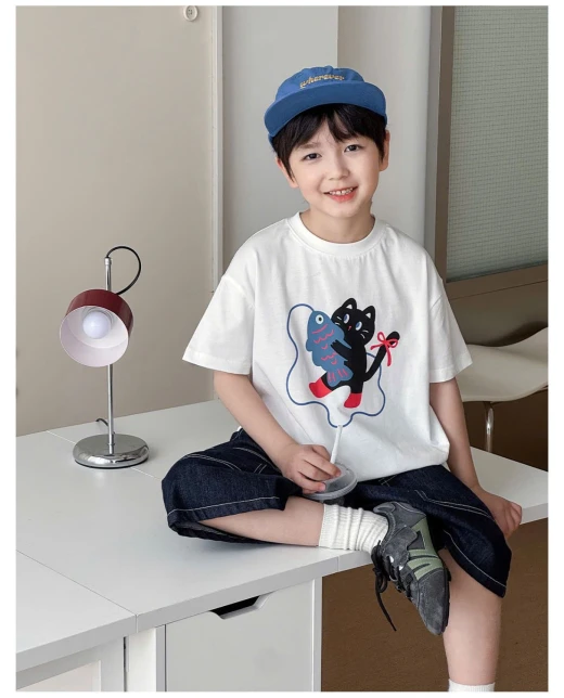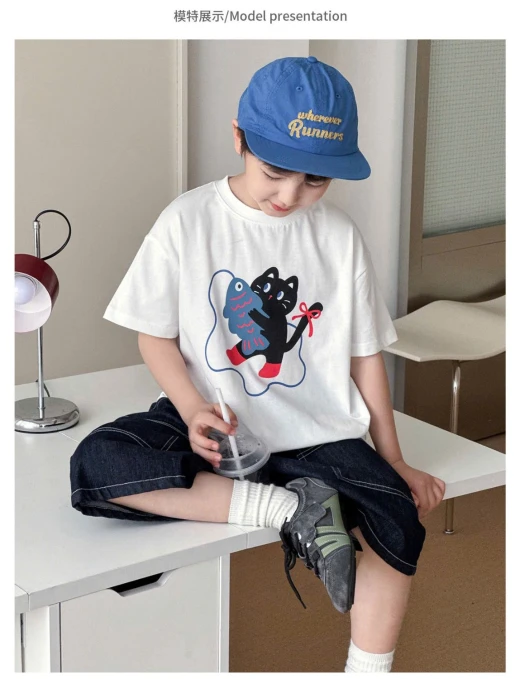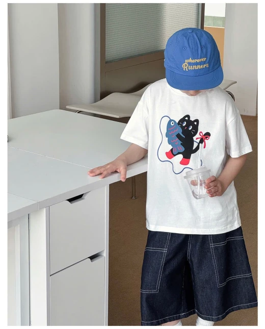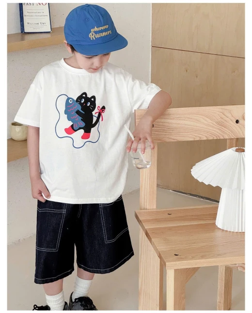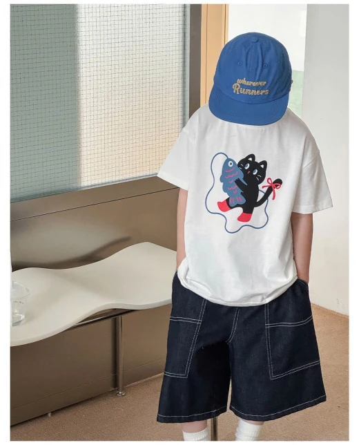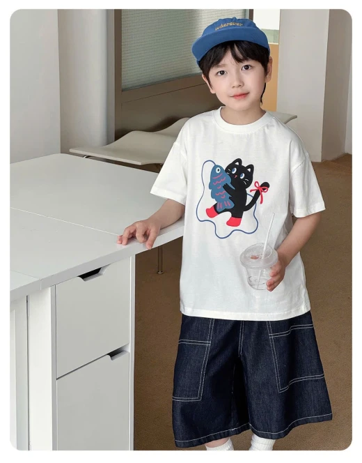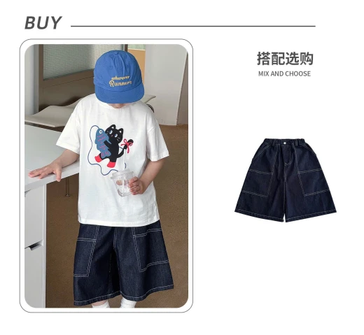 3004c44-ÁO THUN MÈO MIX SHORT DENIM AOAO