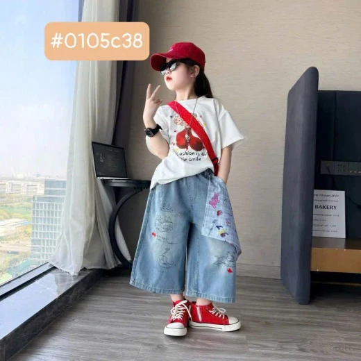 #0105c38 Áo 150k Quần 200k Chốt 0105 ========= ÁO THUN MIX JEANS LỠ Jeans lỡ kèm khăn cá tính luôn ạ ✔Size : 120-170 🚛chốt 1/5