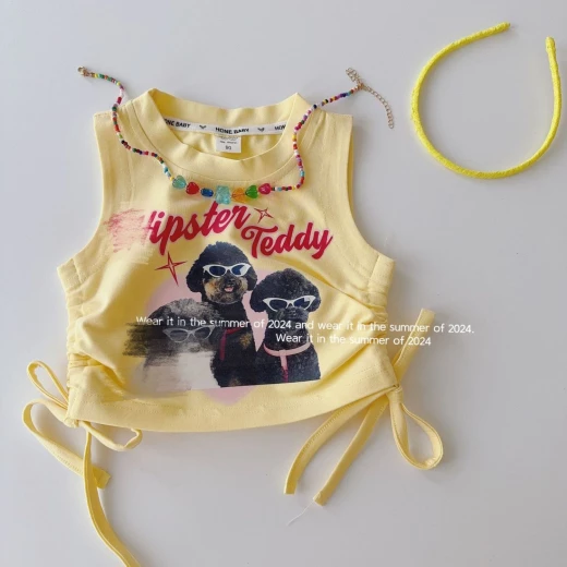 #2703m14 ? ? Áo thun sát nách rút eo xinh xắn ? 3 màu: Vàng - Xanh - Hồng ✅ Sz: 90-140 Giá: 100k Chốt 27.03
