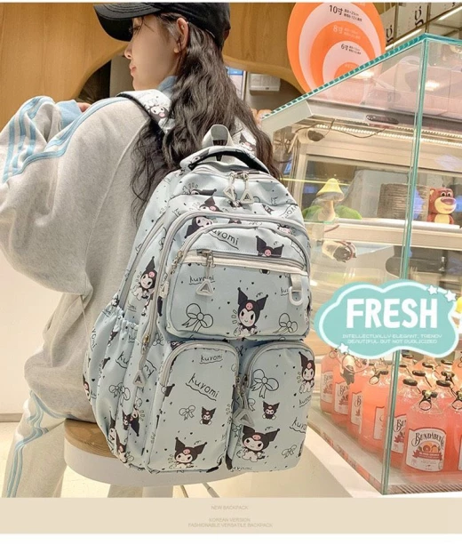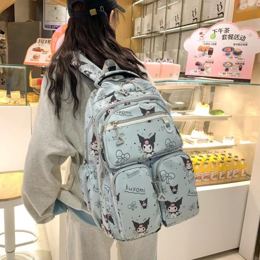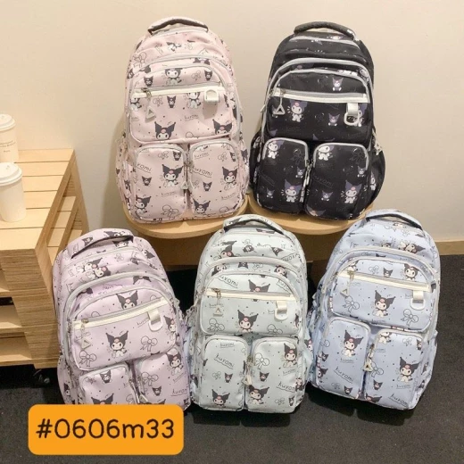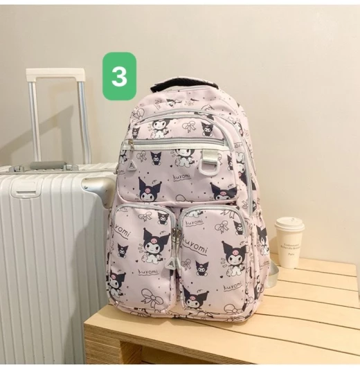 #0606m33 ‼‼‼BALO KUROMI HỌC SINH SINH VIÊN Gom cho các bạn gái mẫu balo họa tiết mới nhất vừa lên kệ. Đảm bảo bé nào cũng thích nha ?5 màu như đánh số ?Size: 45*30*19cm ? giá 118k ( ko móc) ? chốt 6/6