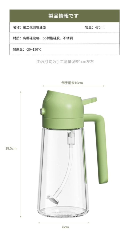 #0206m25 BÌNH ĐỰNG DẦU ĂN, NƯỚC NẮM ??? Bình đựng dầu ăn, nước mắm Màu: xanh lá ✅ Tích hợp xịt và rót - Dung tích: 470ml - Kích thước: 18.5cm*8cm - Trọng lượng: 300gam/1 lọ ✅ Chất liệu: Thân chai bảng thủy tinh dày dặn, nắp đậy bên trong chất liệu nhựa PP an toàn dùng cho thực phẩm ✅ Dễ dàng rót dầu ăn trong quá trình nấu nướng ✅ Bình xịt dầu ăn phun sương có tác dụng chính nhằm hạn chế và sử dụng vừa phải dầu ăn hoặc các loại dầu khác, tránh lãng phí. ✅ Bình xit dầu ăn còn có thể sử dụng với các gia vị dạng lỏng khác như giấm, nước mắm, dầu oliu,.. giúp phân tán đều dầu khi nấu nướng. ✅ Có thể kết hợp sử dụng khi trộn gỏi, salad, giúp sử dụng ít dầu nhất có thể nhưng vẫn đạt được độ đồng đều. ✅ Chai đựng dầu ăn với chất liệu thủy tinh và nặp bằng nhựa PP tuyệt đồi an toàn khi sử dụng ? giá 82k/2 bình ? chốt 02.06