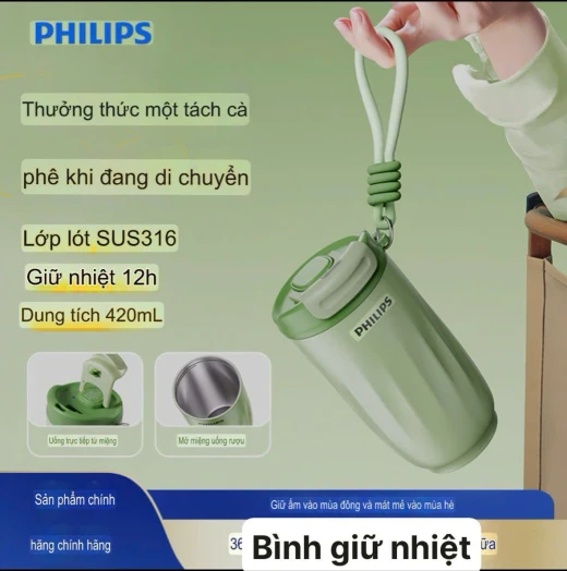 #1309b42 Nếu các chị cần hàng xịn- cao cấp- Inox 316- an toàn sức khoẻ tuyệt đối thì đây rồi a ‼️‼️BÌNH GIỮ NHIỆT PHILIPS - hàng chính hãng‼️‼️ ✔️ Giữ nhiệt nóng – lạnh lâu, lớp chân không cách nhiệt cực tốt ✔️ Nắp chống tràn, tiện mang đi học, đi làm, đi chơi ✔️ Có dây đeo xinh, cầm tay hay treo balo đều gọn ✔️ Dung tích vừa vặn – gọn gàng nhưng đựng đủ nước cho 1 ngày! ✅Có 3 màu: xanh matcha, hồng sữa, xanh dương ✅Giá 2xxk. Bình 420ml ==== chốt 1309 giá 205K//c